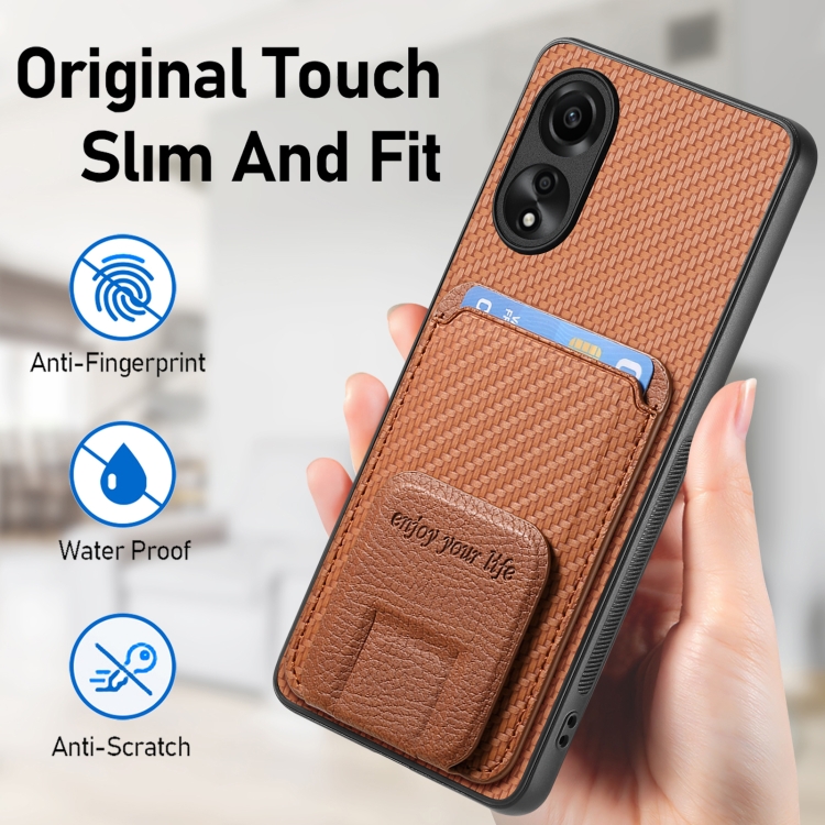 Para Oppo A52 / A72 / A92 Funda para Teléfono con Soporte Plegable y Bolsa para Tarjetas de Fibra de Carbono (Marrón)