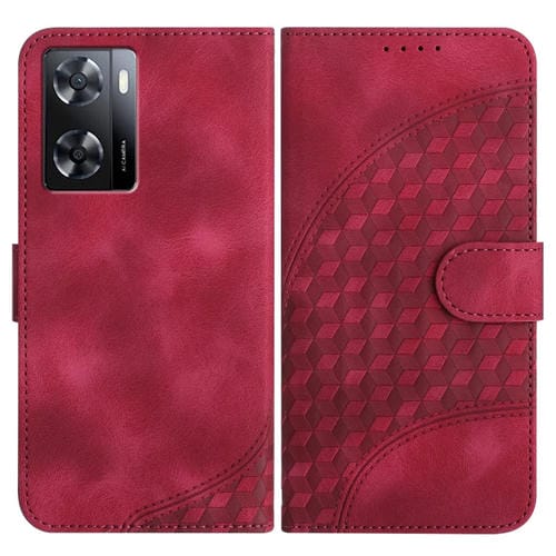 Para Oppo A57 4G Yx0060 Funda de Cuero para Teléfono con Relieve y Cabeza de Elefante con Cordón (Rojo Rosa)