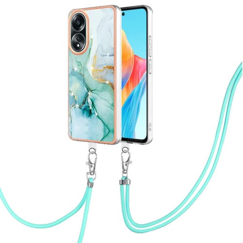 Para Oppo A58 4G Caja de Teléfono Imd de Doble Cara de Mármol Galvanizado con Cordón (Verde 003)