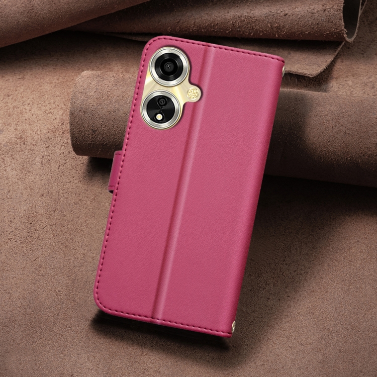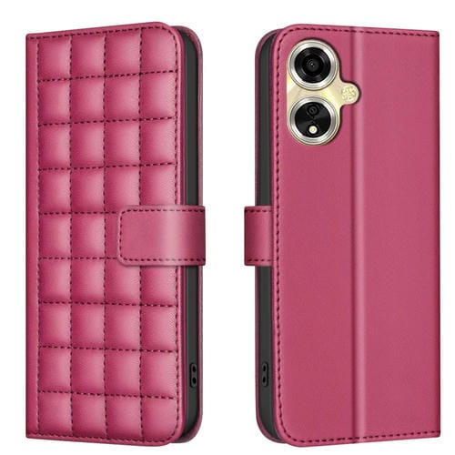 Para Oppo A59 5G Funda de Cuero con Textura Cuadrada (Rojo)