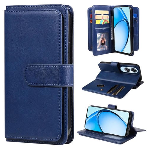 Para Oppo A60 4G Cartera Multifunción con 10 Ranuras para Tarjetas Funda de Cuero para Teléfono (Azul Oscuro)