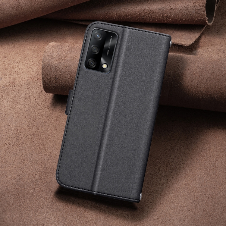 Para Oppo A74 4G / F19 4G Funda de Cuero para Teléfono con Textura Cuadrada (Negro)