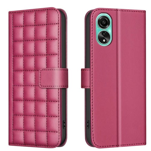 Para Oppo A78 4G Funda de Cuero con Textura Cuadrada (Rojo)