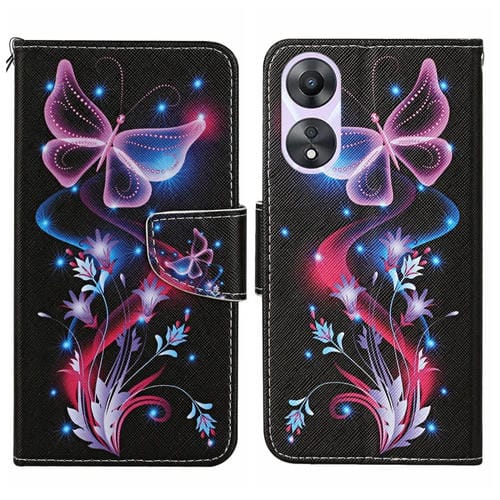 Para Oppo A78 4G Funda de Cuero para Teléfono con Patrón de Dibujo Coloreado (Mariposa Fluorescente)