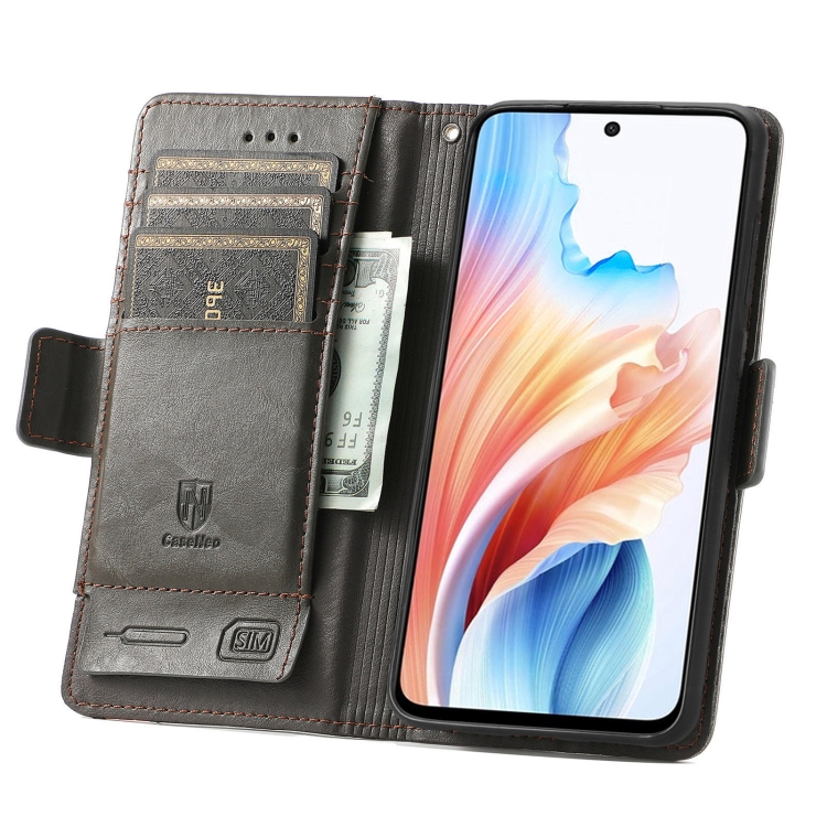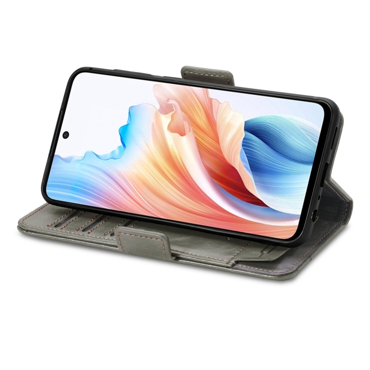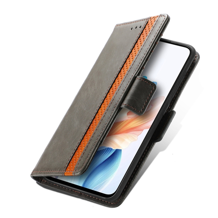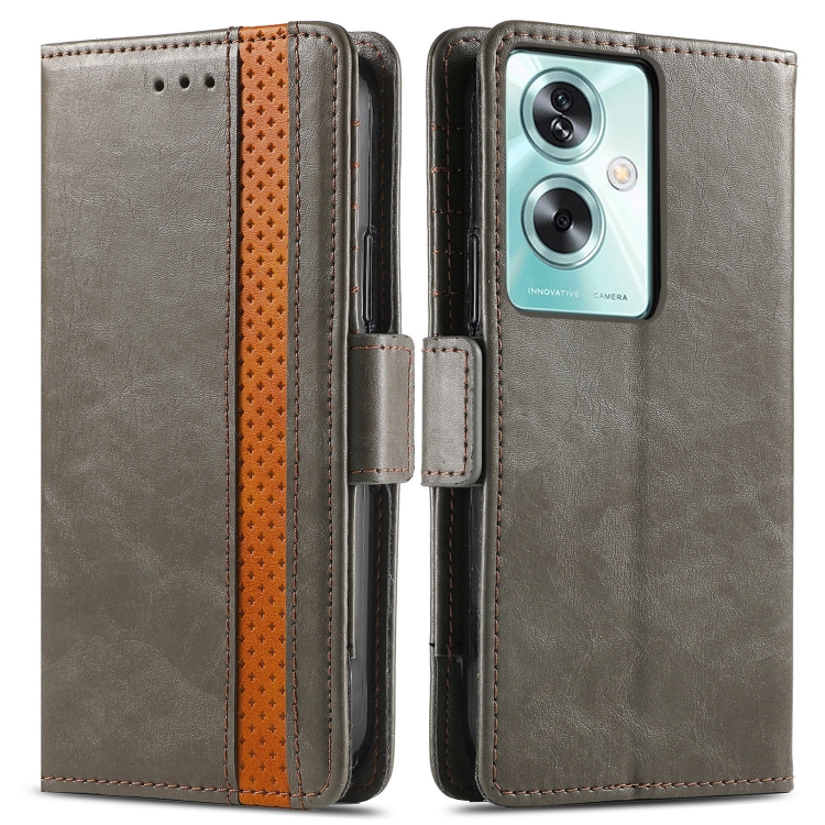 Para Oppo A79 5G / A2 5G Caseneo Splicing Funda de Cuero para Teléfono con Hebilla Magnética Dual (Gris)