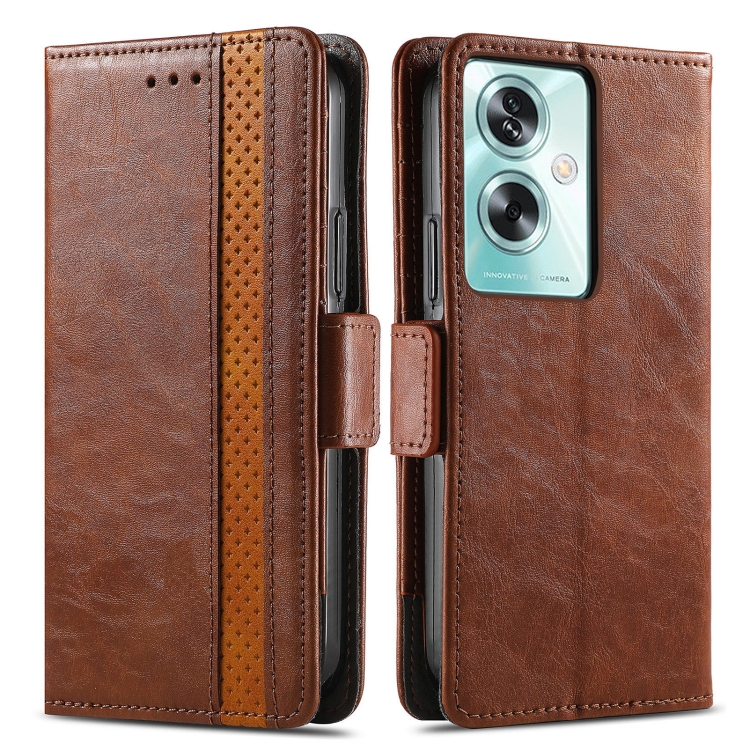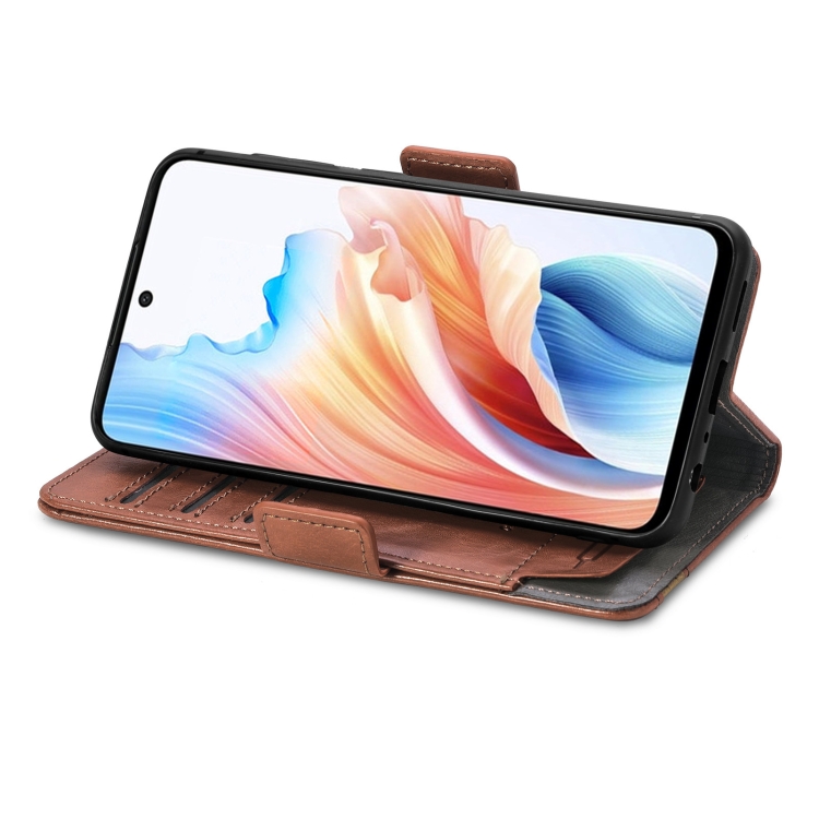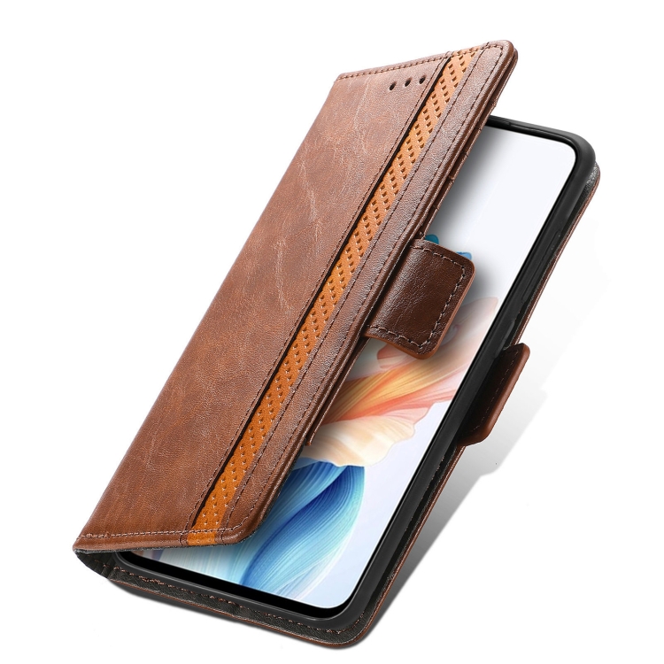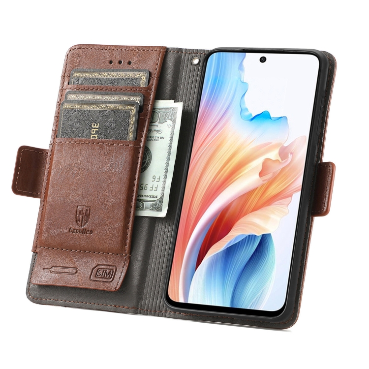 Para Oppo A79 5G / A2 5G Caseneo Splicing Funda de Teléfono de Cuero con Hebilla Magnética Dual (Marrón)