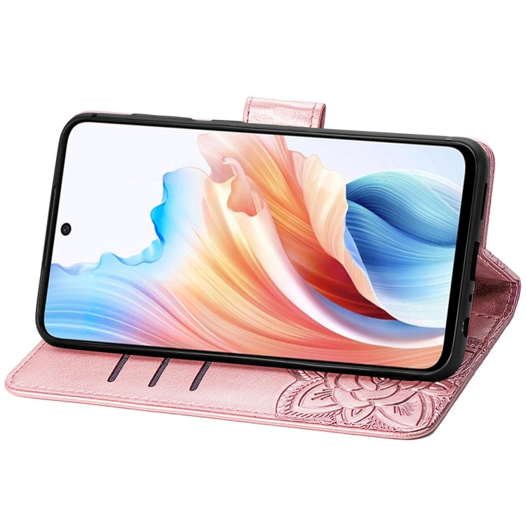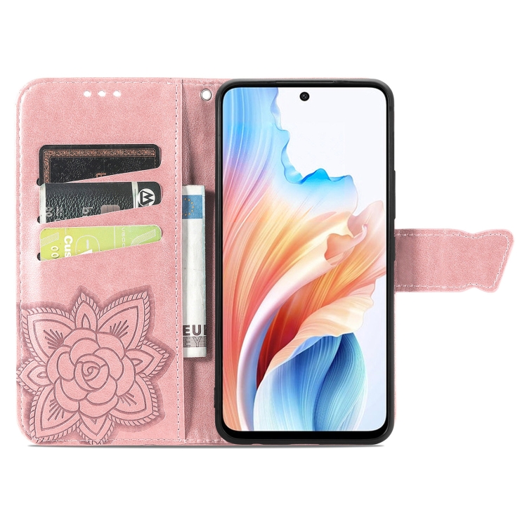 Para Oppo A79 5G / A2 5G Funda de Cuero con Tapa Horizontal En Relieve con Flor de Mariposa (Oro Rosa)