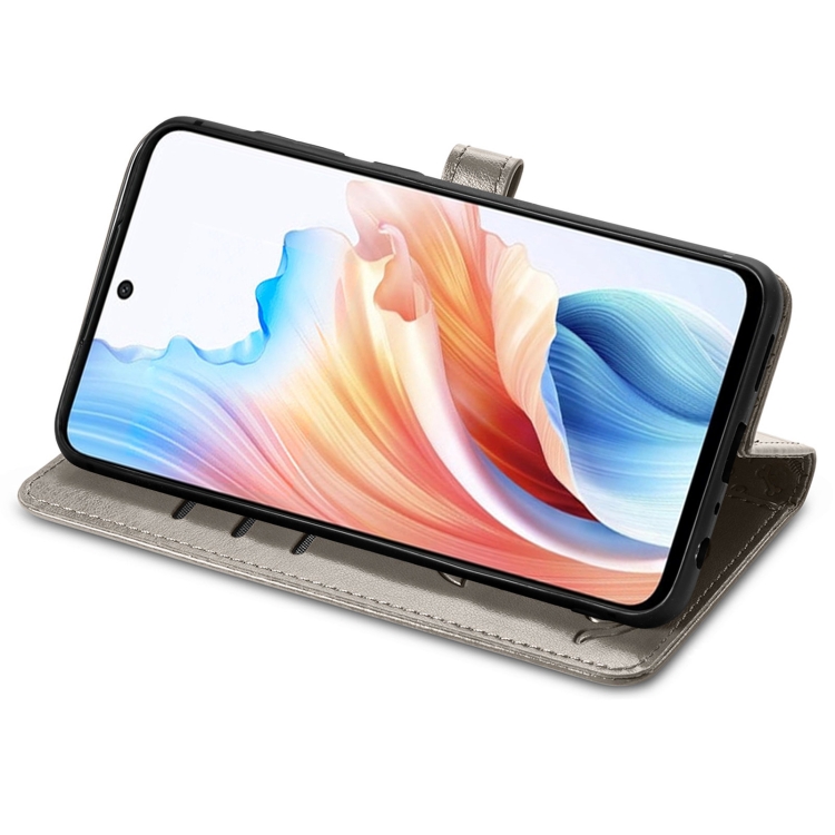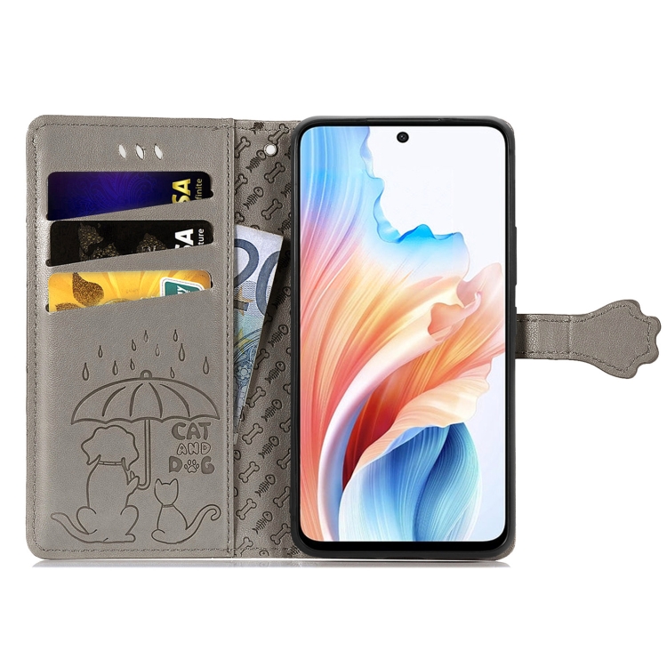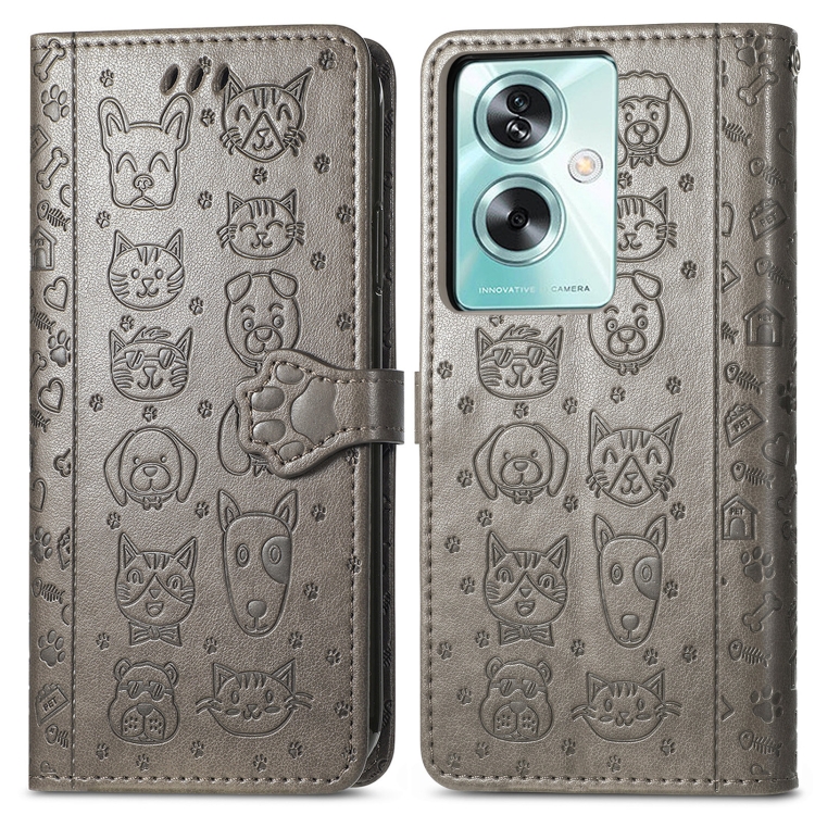 Para Oppo A79 5G / A2 5G Funda para Teléfono de Cuero con Relieve de Perro y Gato (Gris)