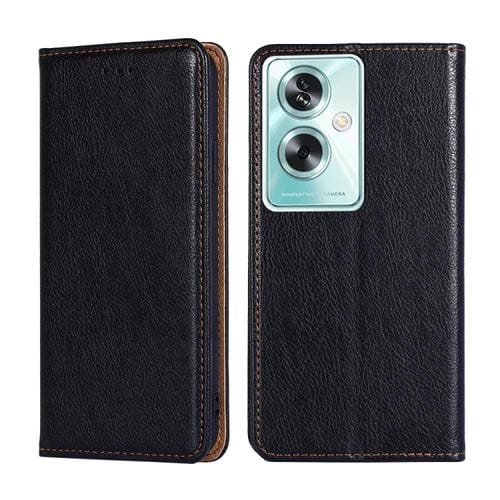 Para Oppo A79 5G Global Gloss Oil Color Sólido Funda de Teléfono de Cuero Magnético (Negro)