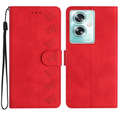 Para Oppo A79 5G Seven Butterflies Funda de Cuero para Teléfono En Relieve (Rojo)