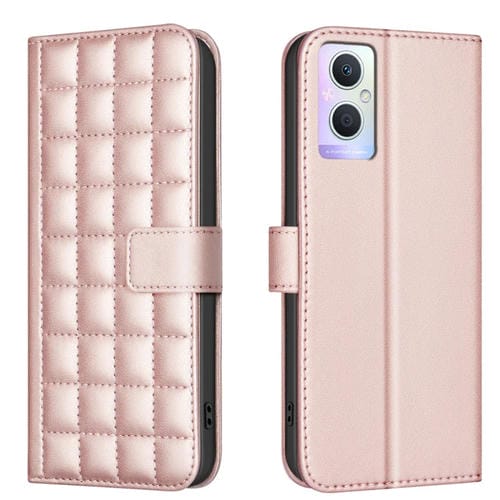 Para Oppo A96 5G / Reno7 Z Funda de Cuero para Teléfono con Textura Cuadrada (Oro Rosa)