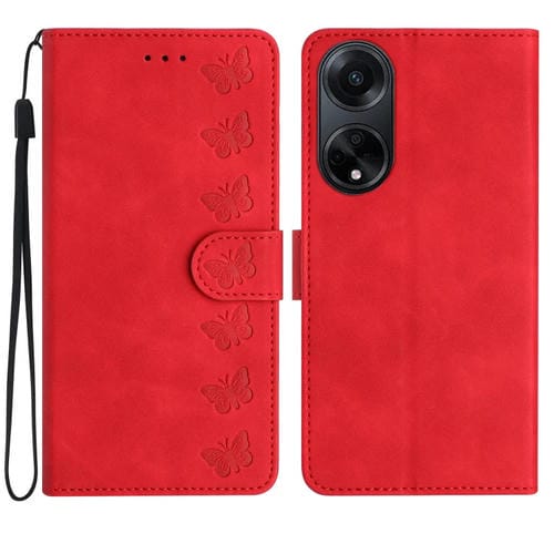 Para Oppo A98 5G Seven Butterflies Funda de Cuero para Teléfono En Relieve (Rojo)