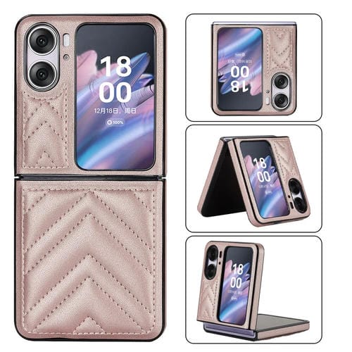 Para Oppo Find N2 Funda para Teléfono Plegable En Forma de V con Tapa (Oro Rosa)