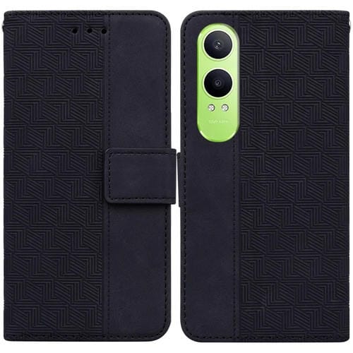 Para Oppo K12X Funda de Cuero con Relieve Geométrico (Negro)