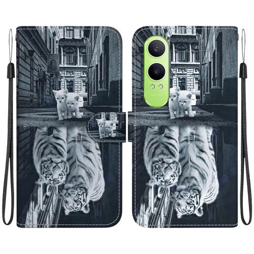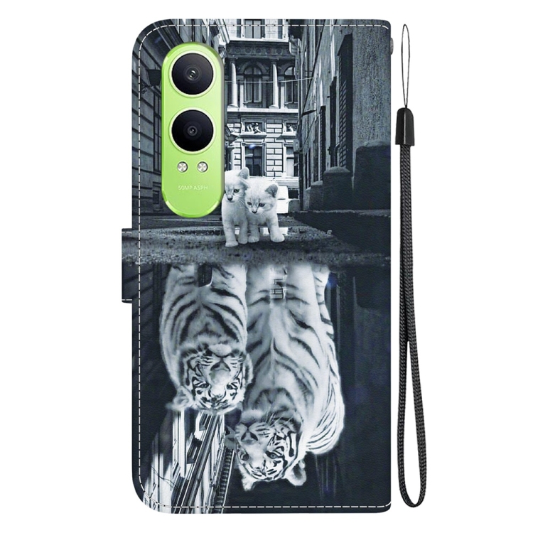 Para Oppo K12X Funda de Teléfono de Cuero con Dibujo Coloreado con Textura de Cristal (Reflejo de Tigre Gato)