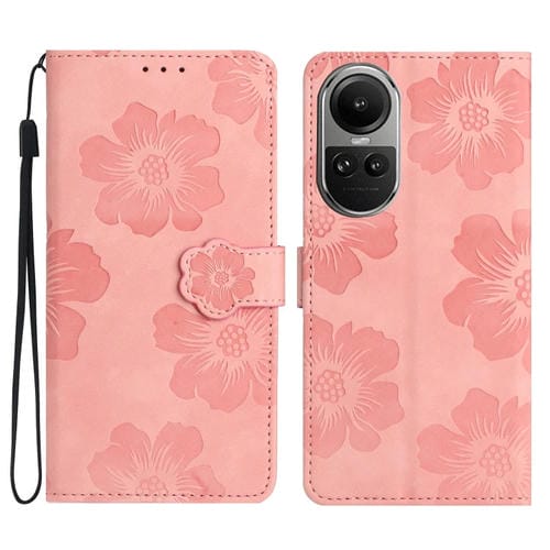 Para Oppo Reno10 5G / Reno10 Pro 5G Funda de Cuero para Teléfono con Estampado de Flores Globales (Rosa)