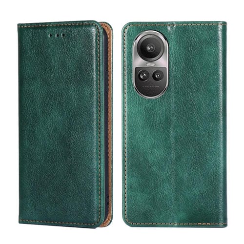 Para Oppo Reno10 5G / Reno10 Pro 5G Funda de Teléfono de Cuero Magnético de Color Sólido con Brillo Global (Verde)