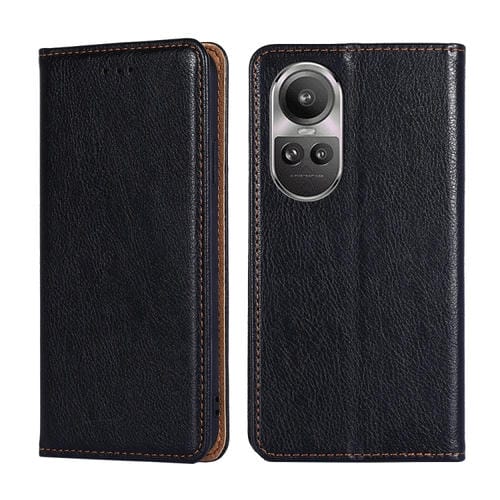 Para Oppo Reno10 5G / Reno10 Pro 5G Funda para Teléfono de Cuero Magnético de Color Sólido con Aceite Brillante Global (Negro)