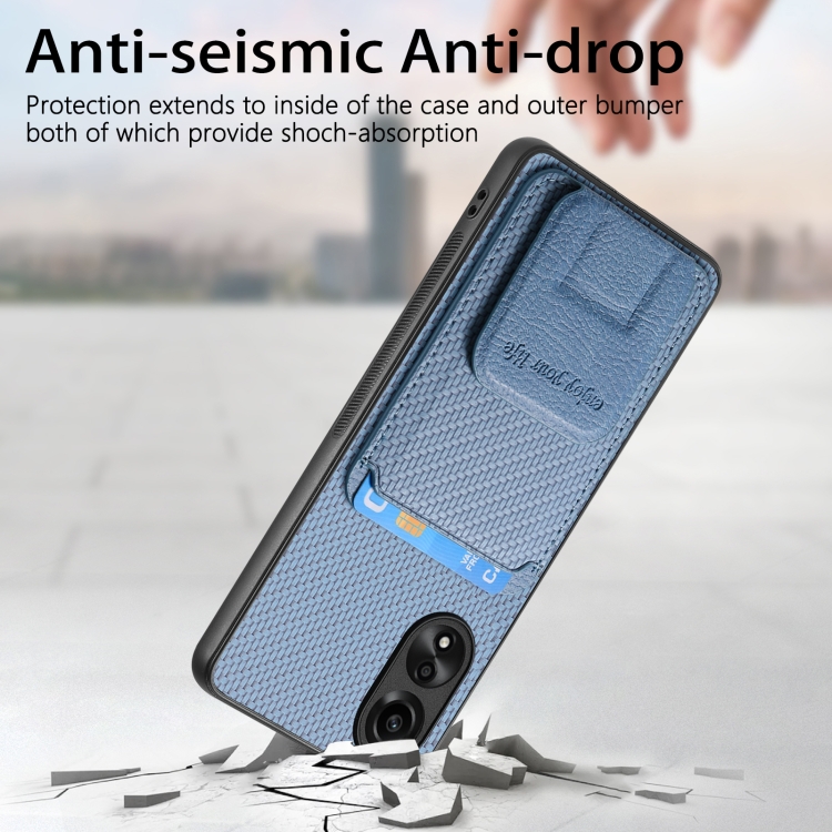Para Oppo Reno10 Pro + Funda para Teléfono con Soporte Plegable y Bolsa para Tarjetas de Fibra de Carbono (Azul)