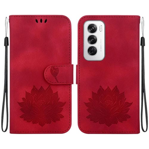 Para Oppo Reno12 5G Global Lotus Funda de Cuero En Relieve para Teléfono (Rojo)
