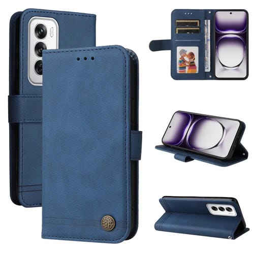 Para Oppo Reno12 5G Global Skin Feel Life Tree Funda de Cuero con Botón de Metal (Azul)