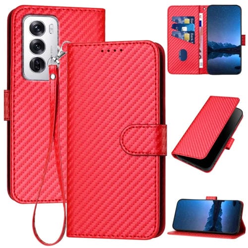 Para Oppo Reno12 Global Yx0070 Funda de Cuero con Hebilla de Fibra de Carbono y Cordón (Rojo)