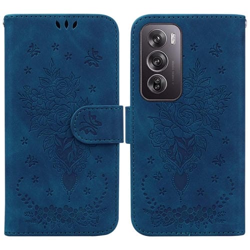 Para Oppo Reno12 Pro 5G Global Butterfly Rose Funda de Cuero para Teléfono En Relieve (Azul)