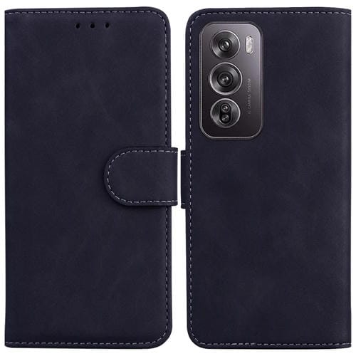Para Oppo Reno12 Pro 5G Global Skin Feel Pure Color Funda de Cuero con Tapa para Teléfono (Negro)