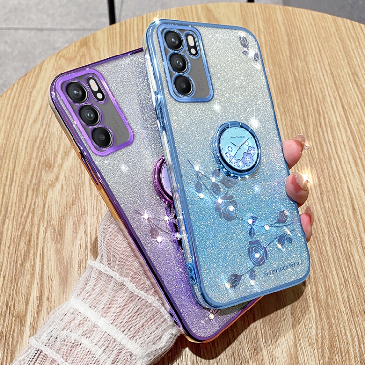 Para Oppo Reno6 Z Estuche para Teléfono con Todo Incluido con Anillo de Flor Inmortal con Brillo Degradado (Rosa)