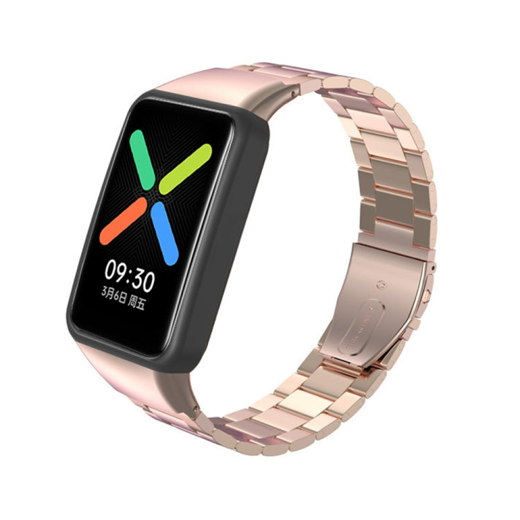 For OPPO Watch Free NFC Stainless Steel Three-Bead Watch Strap (Rose Gold)