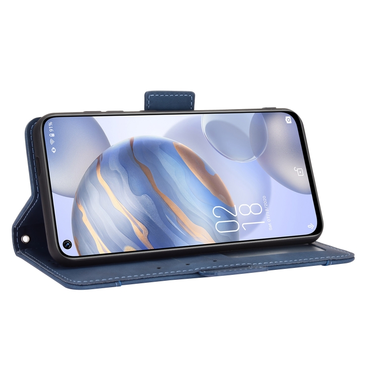 Funda de Cuero Flip Horizontal para Oukitel C21 / C21 Pro con Soporte, Ranuras y Marco de Fotos (Azul)