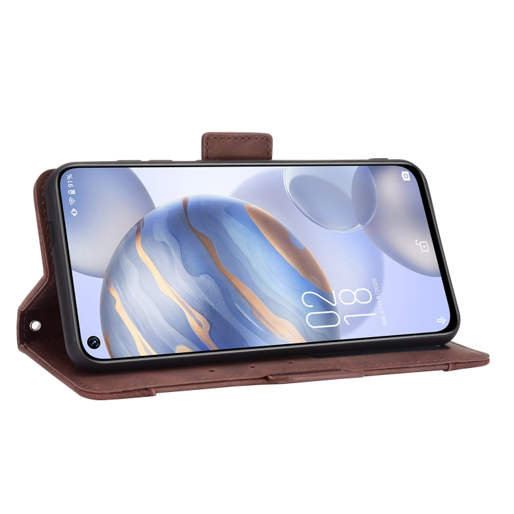 Funda de Cuero Flip para Oukitel C21 y C21 Pro con Soporte, Ranuras y Marco de Fotos (Marrón)