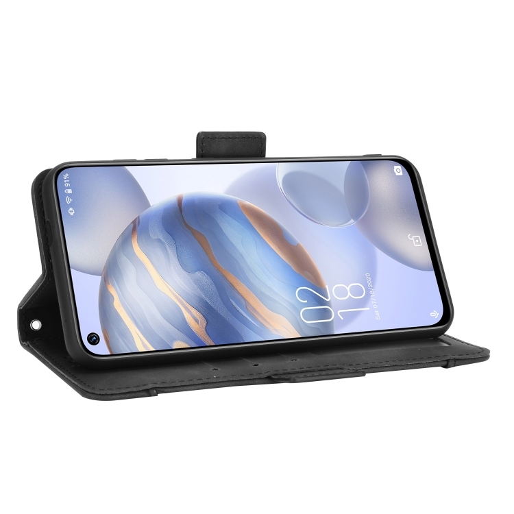 Funda de Cuero Flip para Oukitel C21 / C21 Pro con Soporte, Ranuras y Marco de Fotos (Negro)