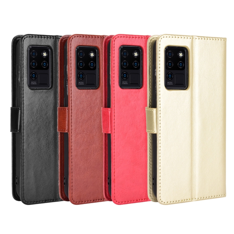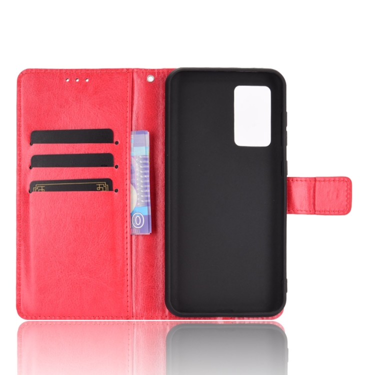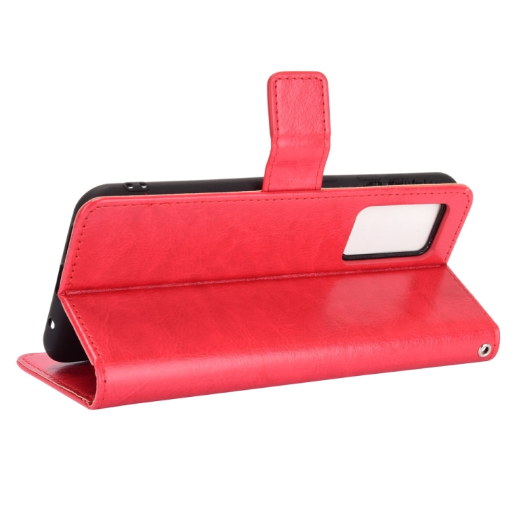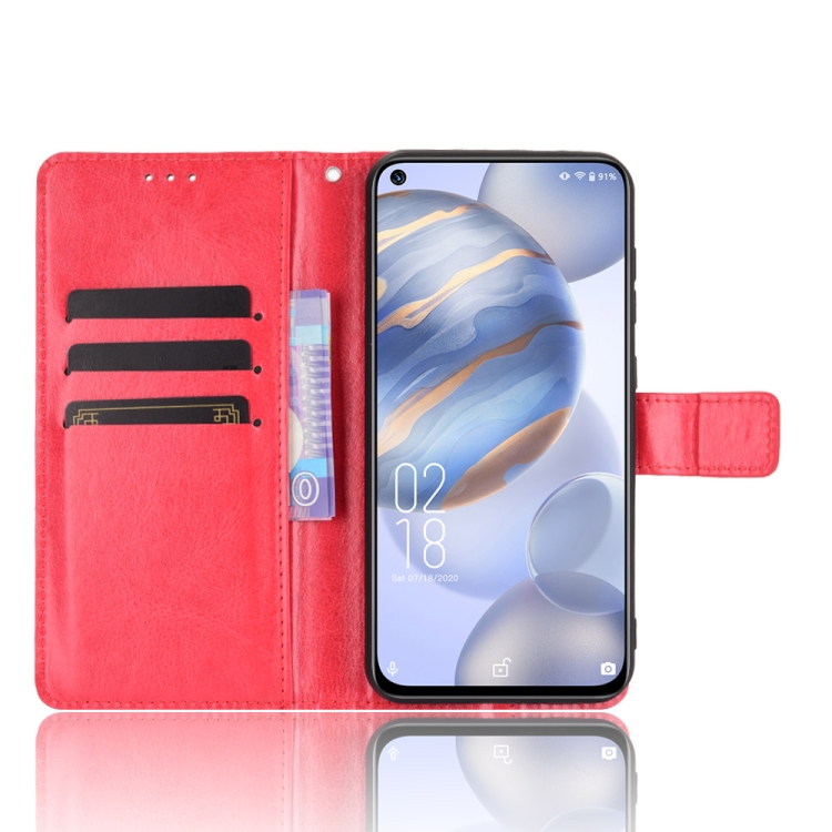 Funda de Cuero para Oukitel C21 Crazy Horse Texture con Soporte, Ranuras y Cordón (Rojo)