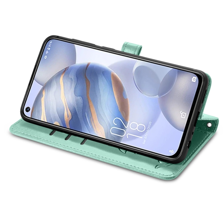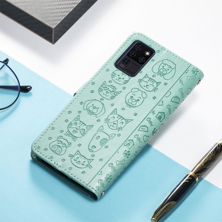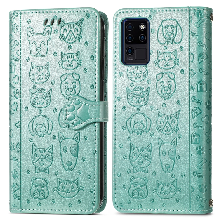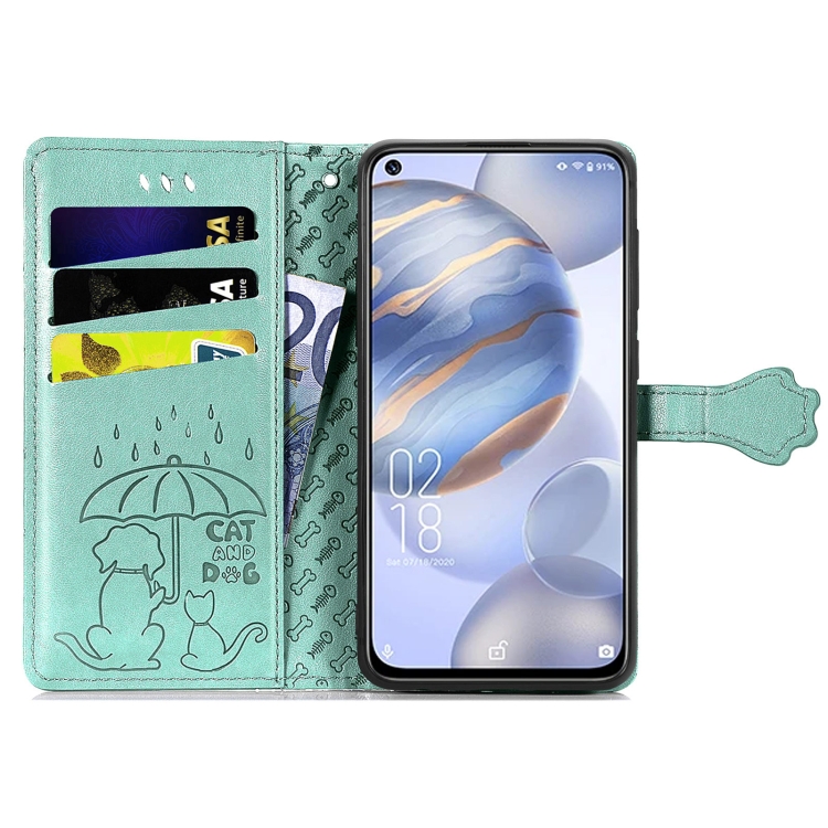 Funda para Oukitel C21 con Estampado Gato y Perro, Soporte, Ranuras para Tarjetas y Cordón (Verde)