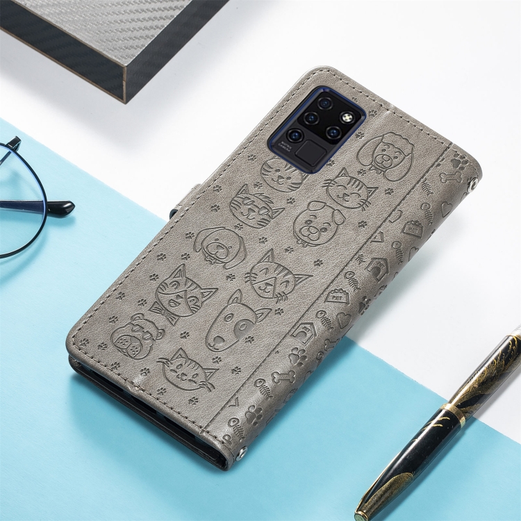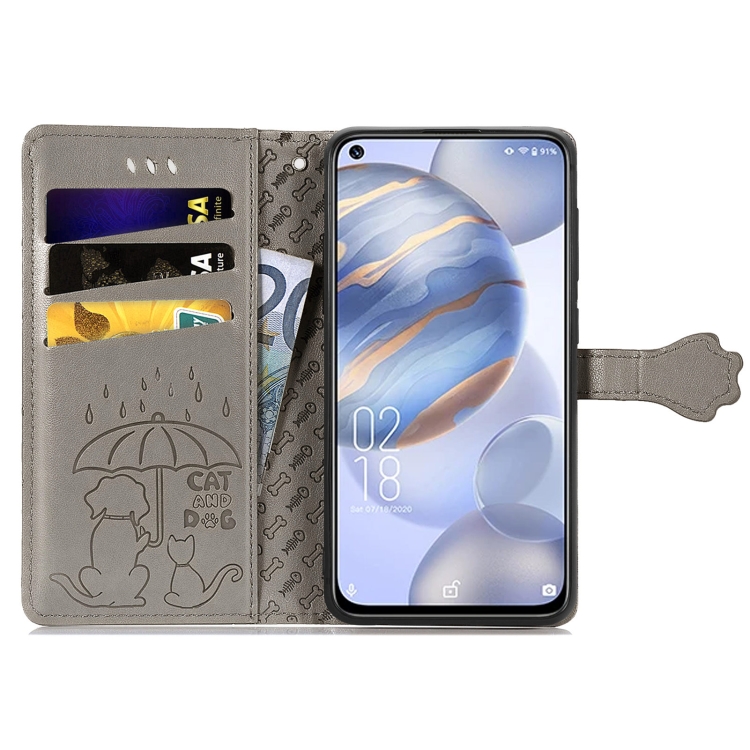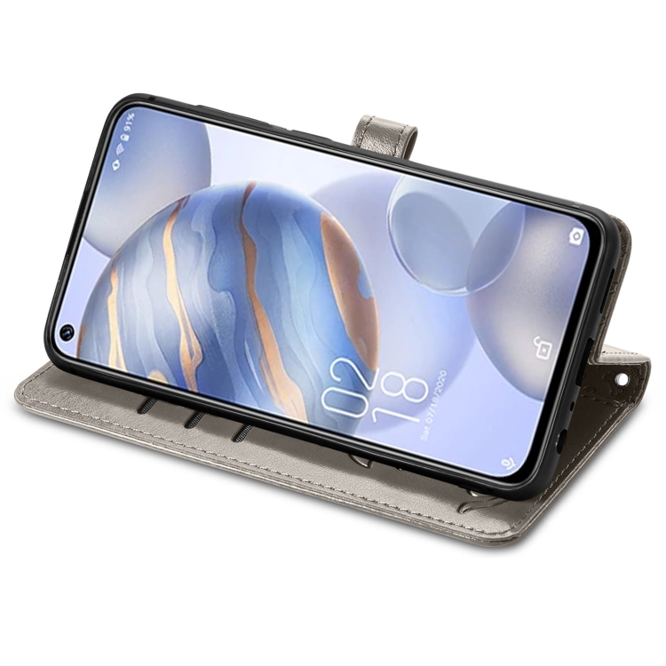 Estuche de Cuero Horizontal para Oukitel C21 con Soporte, Tragamonedas, Billetera y Cordón (Gris)