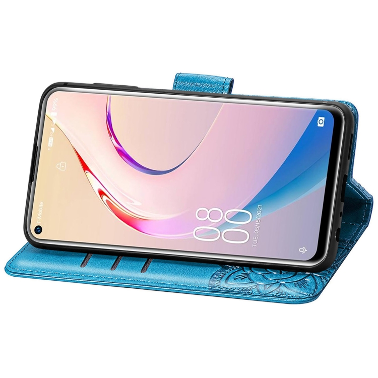 Funda de Cuero Horizontal para Oukitel C21 Pro con Soporte, Ranuras y Cordón (Azul)