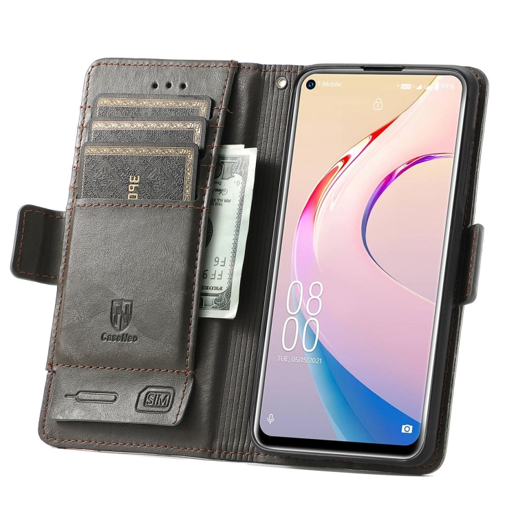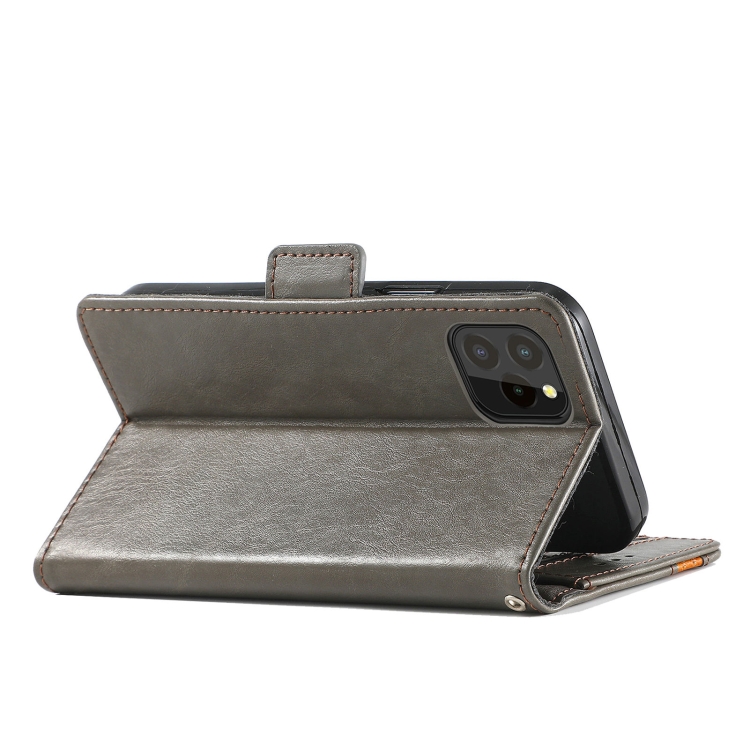 Funda de Cuero para Oukitel C21 Pro con Hebilla Magnética, Soporte y Ranuras para Tarjetas (Gris)