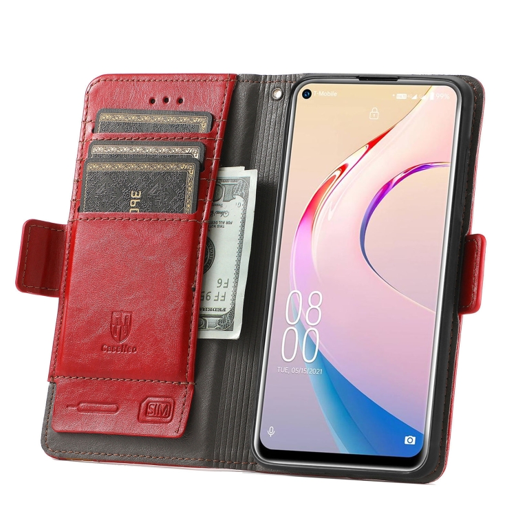 Funda de Cuero PU para Oukitel C21 Pro con Soporte, Billetera y Tragamonedas (Rojo)