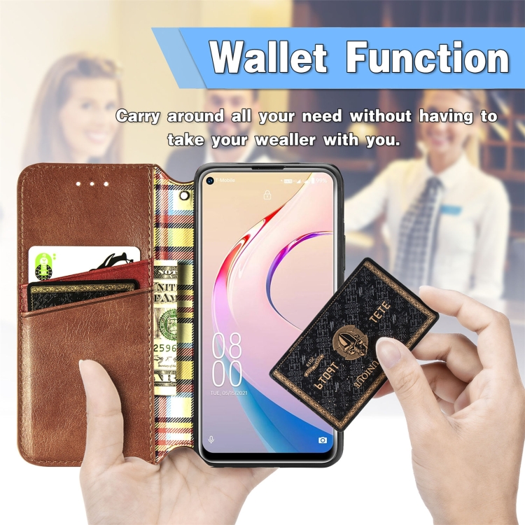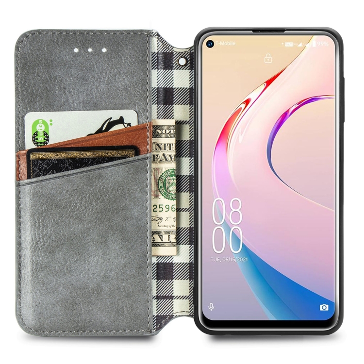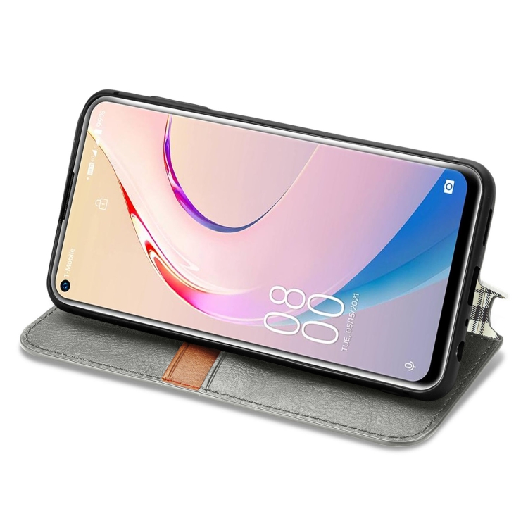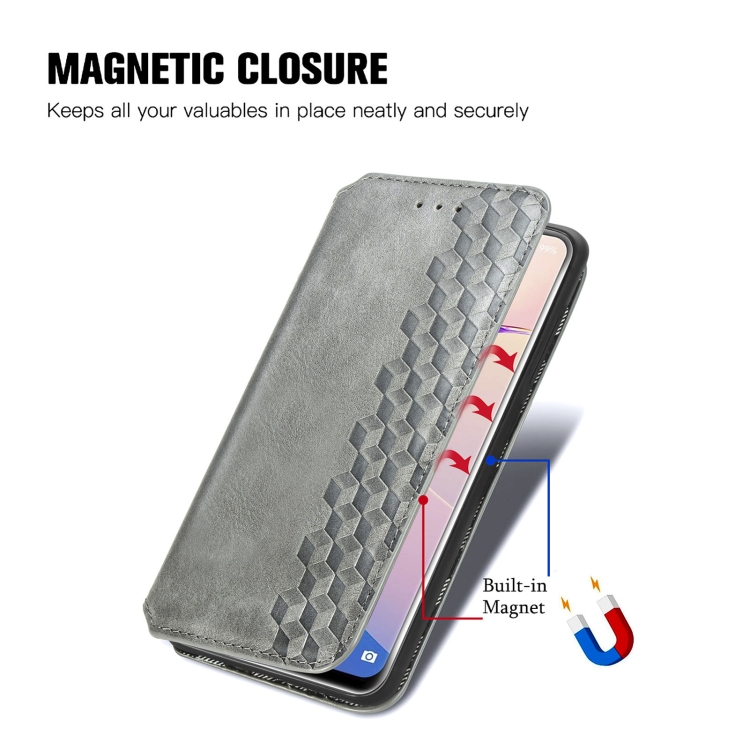 Funda Flip Magnética para Oukitel C21 Pro Cubic Grid con Soporte y Ranuras para Tarjetas (Gris)