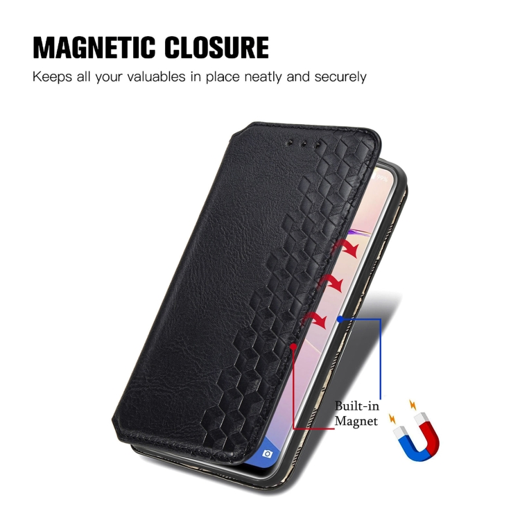Funda Cubica Pulse Horizontal Flip Magnet para Oukitel C21 Pro con Soporte y Ranuras para Tarjetas (Negro)