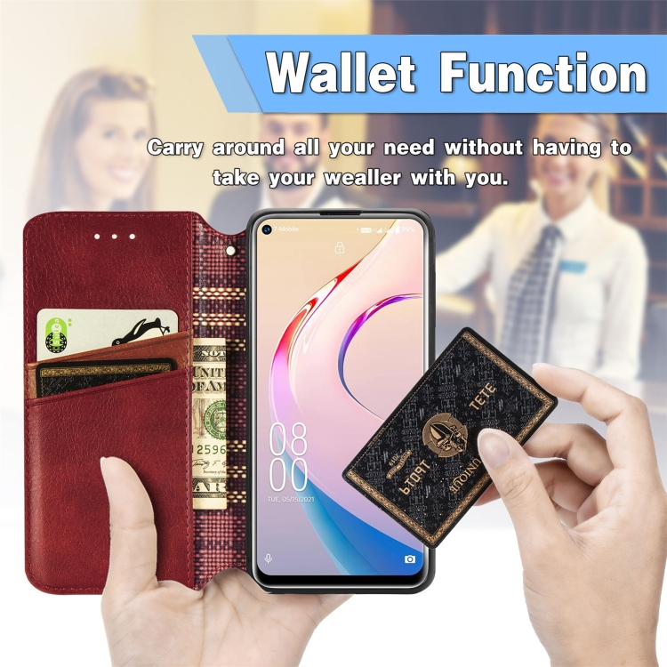 Funda Cubica Pulse Horizontal Flip Magnetic PU para Oukitel C21 Pro con Soporte y Billetera (Rojo)