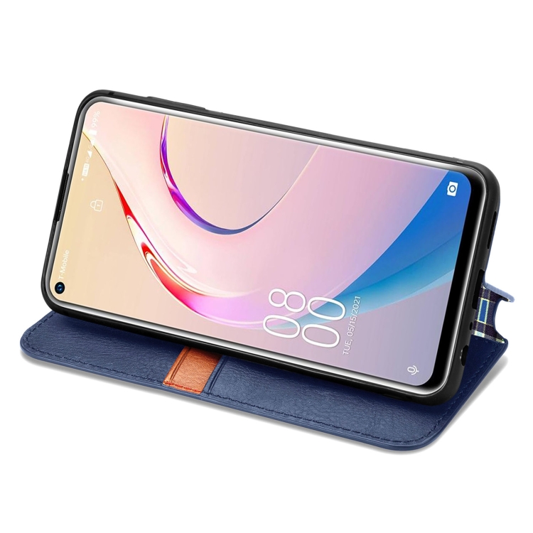 Funda de Cuero PU para Oukitel C21 Pro con Soporte y Ranuras para Tarjetas (Azul)