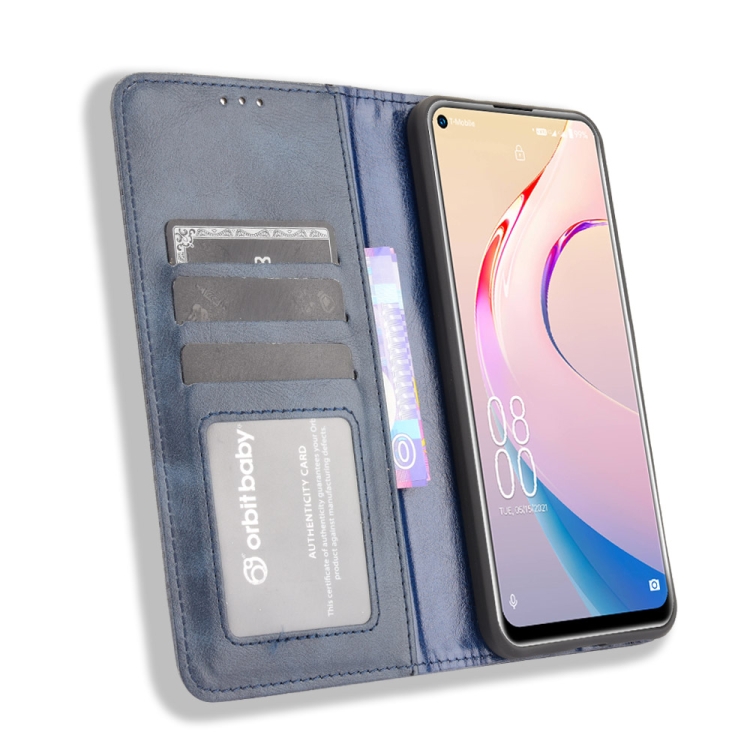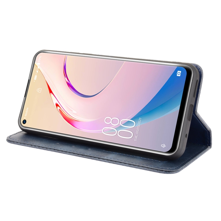 Funda de Cuero Oukitel C21 Pro Hebilla Magnética Flip Horizontal Soporte Ranuras Tarjetas Marco Fotos (Azul)