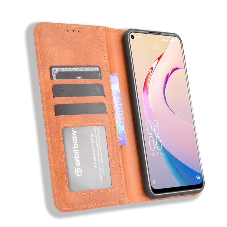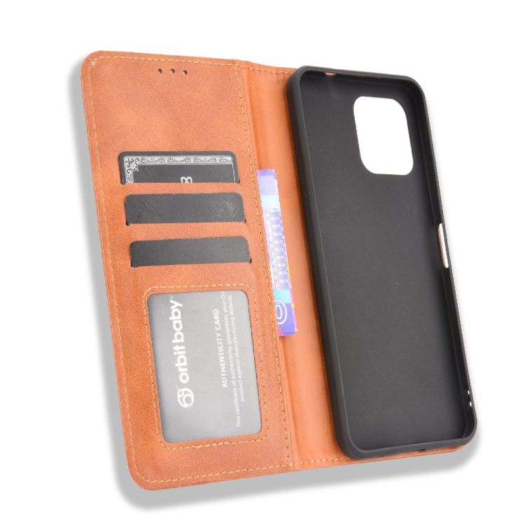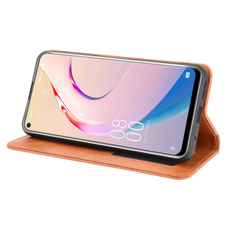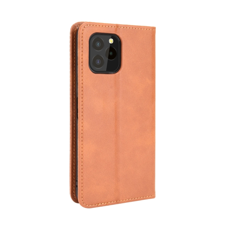 Funda de Cuero para Oukitel C21 Pro con Hebilla Magnética, Soporte, Ranuras y Marco de Fotos (Marrón)