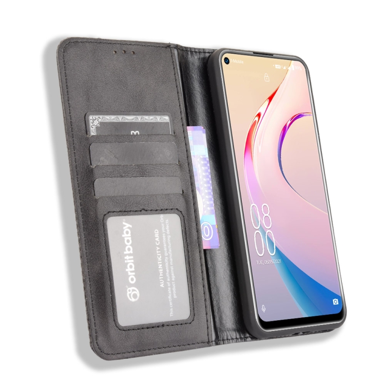 Funda de Cuero para Oukitel C21 Pro con Hebilla Magnética, Soporte, Ranuras y Marco de Fotos (Negro)