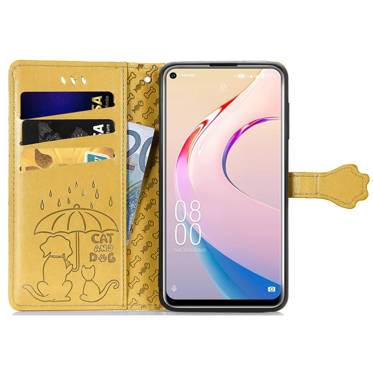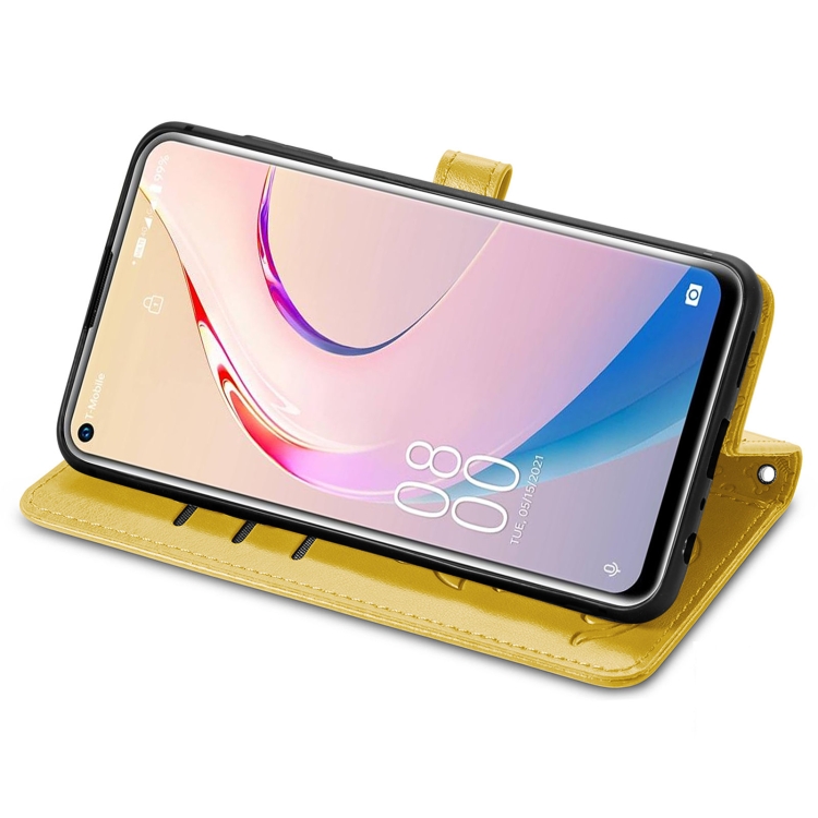 Funda de Cuero Horizontal Oukitel C21 Pro con Soporte, Ranuras y Cordón (Amarillo)