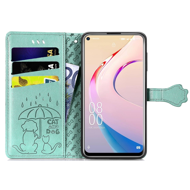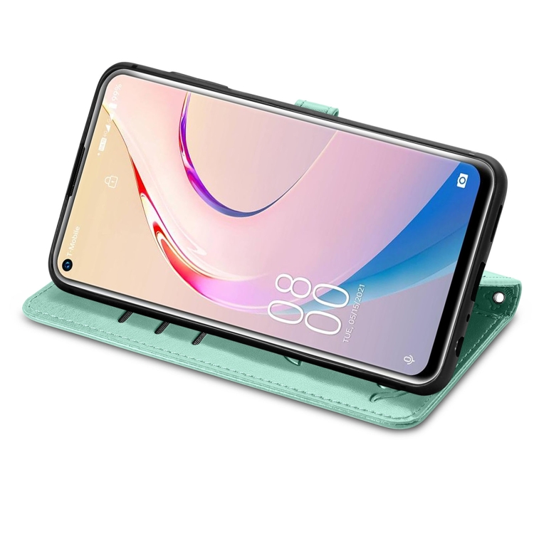 Funda de Cuero para Oukitel C21 Pro con Soporte, Tragamonedas, Billetera y Cordón (Verde)