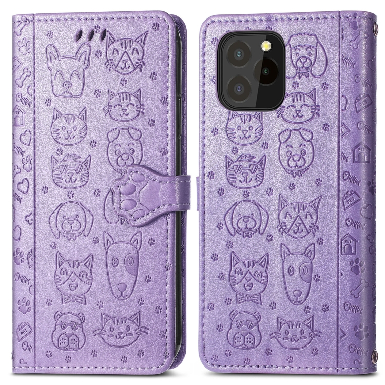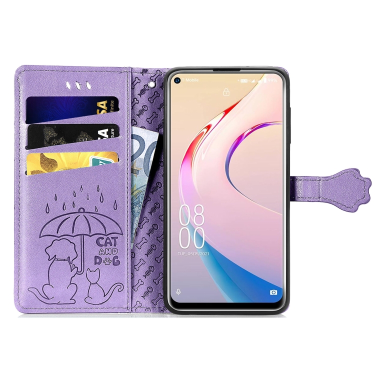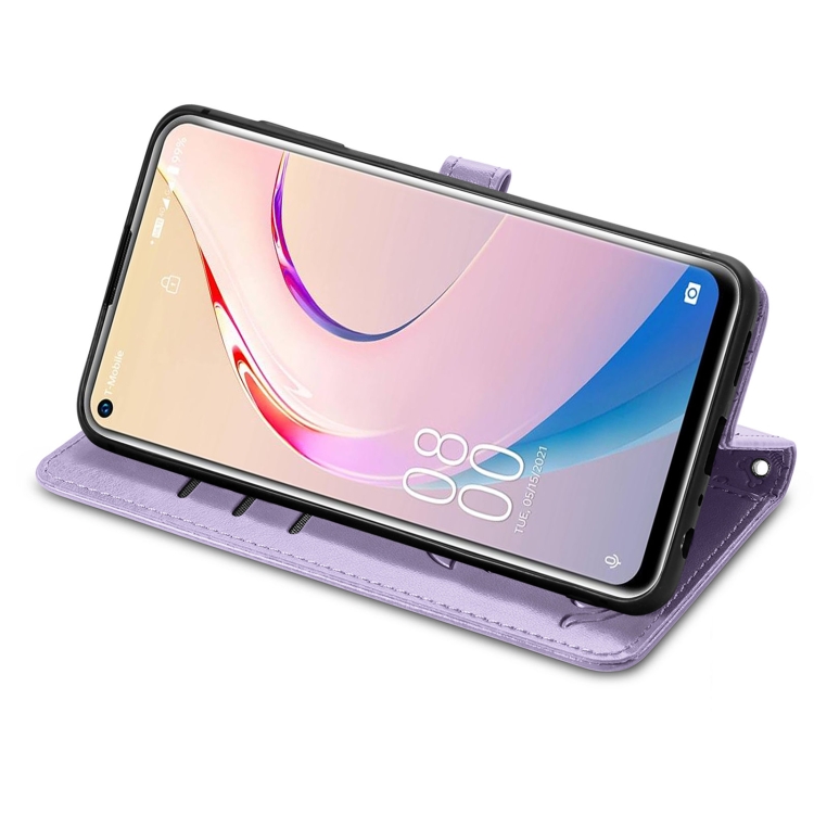 Funda de Cuero Horizontal para Oukitel C21 Pro con Soporte, Tragamonedas, Billetera y Cordón (Púrpura)