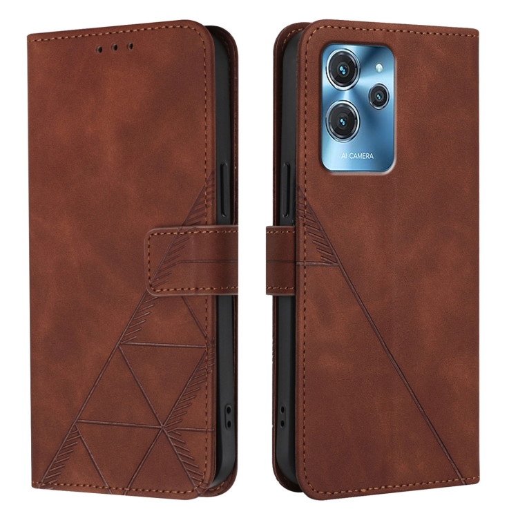 Funda para Oukitel C32 Crossbody de Cuero con Tapa en Relieve 3D (Marrón)